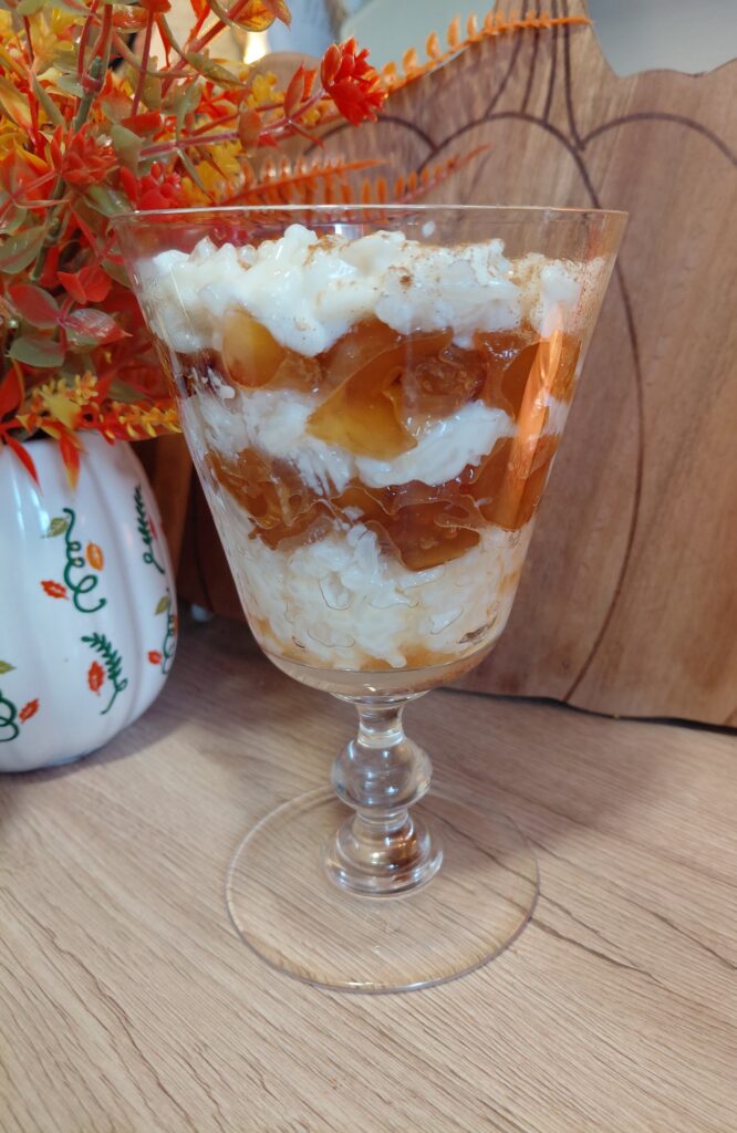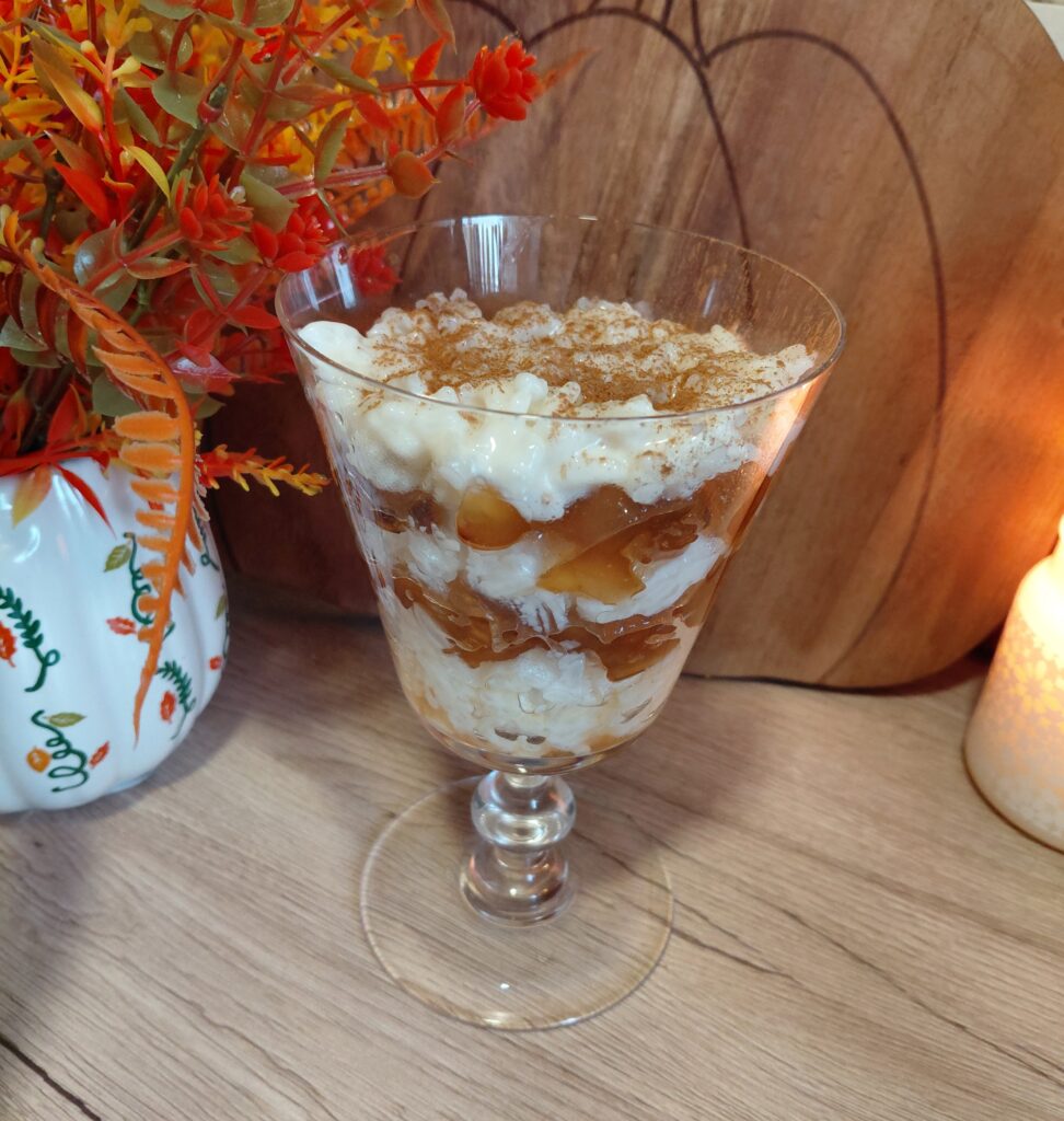 A tejberizs elkészítéséhez a vizet és tejet főzni kezdjük, amikor forrni kezd hozzáadjuk a rizst és a többi hozzávalót. Fedő alatt, gyakran kevergetve főzzük. A karamellás-almához a cukorból és a vízből szirupot készítünk, amikor elkezd sűrűsödni hozzáadjuk a felkockázott almát. Az összes vizet hagyjuk elpárologni, karamellizáljuk, amikor már szép aranybarna, akkor kb. 0,5-1 dl folyadékot adnunk hozzá, ez lehet víz, tej, tejszín, de akár vaj is.